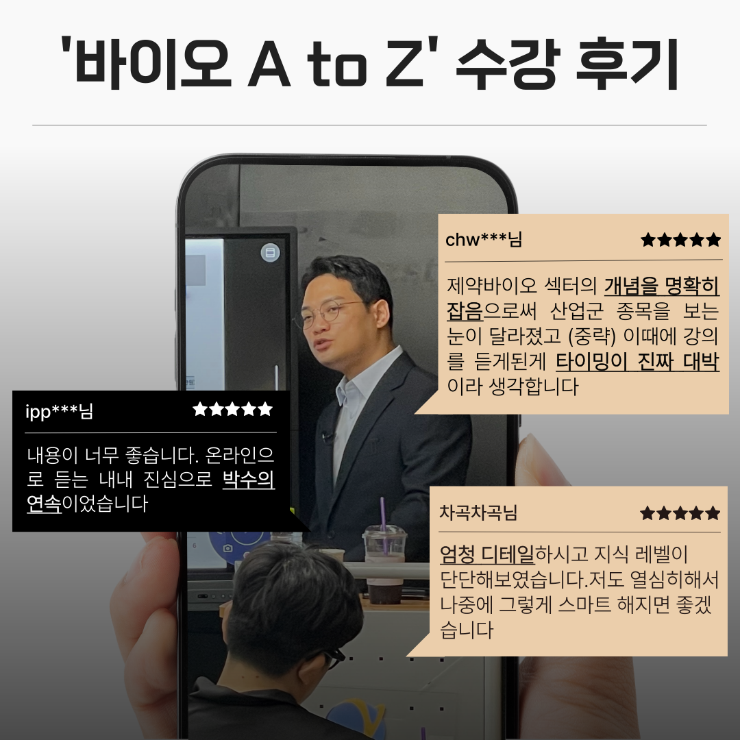 처음부터 쉽게 차근차근 설명해 주시고 되게 깊이 있는 설명 해 주셔서 많이 배우고 바이오에 관심이 많이 가게 되었습니다